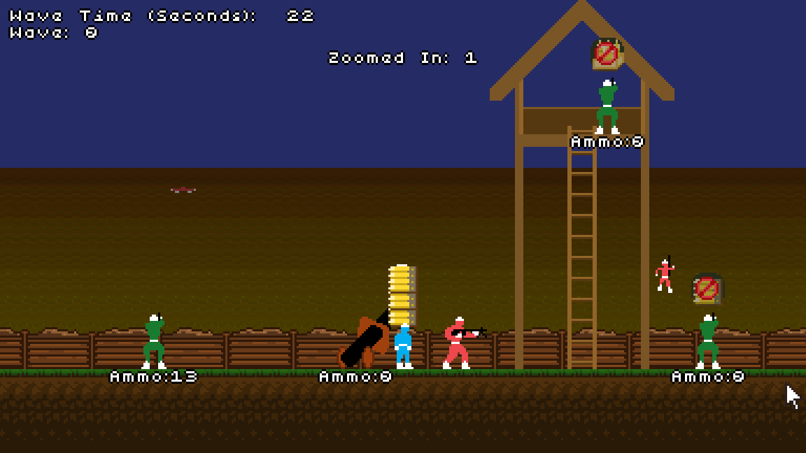 Zoom out to get a better view, click-drag to reposition your teammates, choose which resource is gonna be the most useful get and to lug around, and watch the bullets fly!