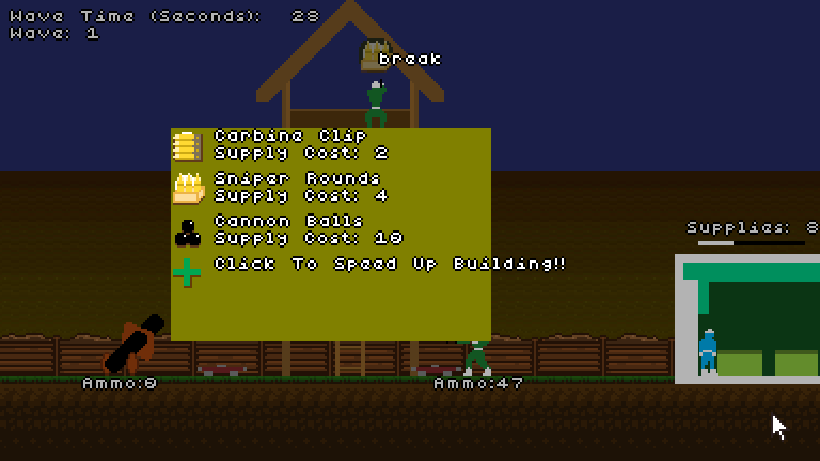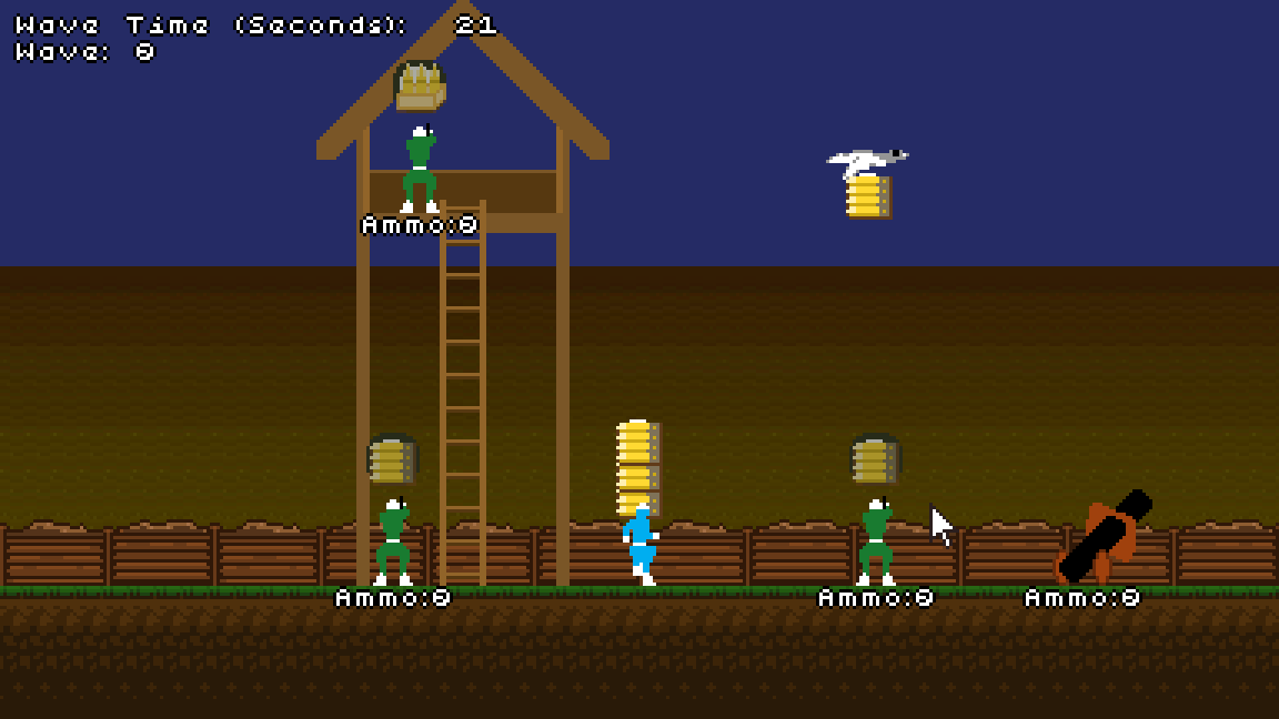 Finally made another game with an ending! my friend Killian came up with the core idea, you're a runner in Ye Olde War ™ and have to bring supplies to your teammates to prevent the onslaught. Advanced bullet physics! Advanced pigeon physics!